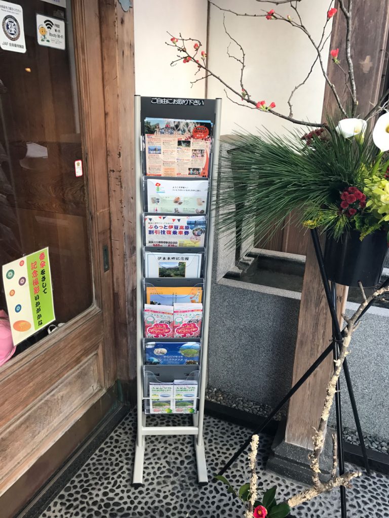 市にチラシラックの設置を求め、東海館の前やぬくもーる前などに設置してもらいました。